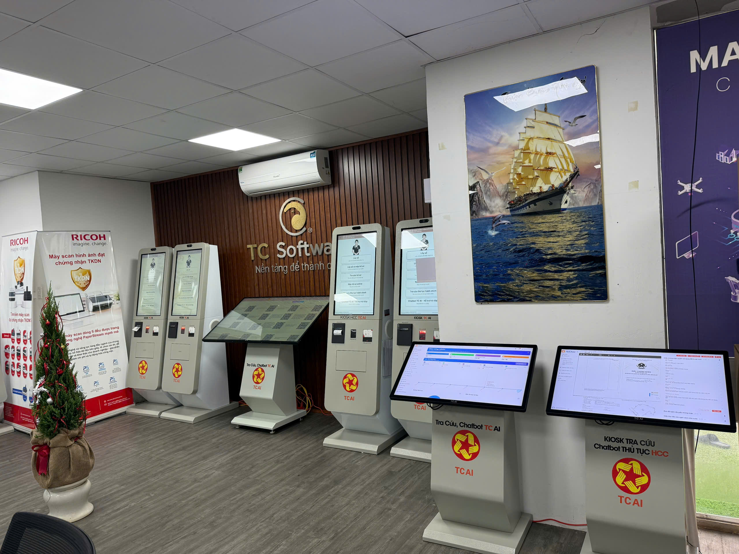 Trong xu hướng đẩy mạnh chuyển đổi số tại các cơ quan nhà nước, TC Group đã nghiên cứu và phát triển Giải pháp Kiosk TC AI – giải pháp thiết bị tự phục vụ tích hợp trí tuệ nhân tạo, hỗ trợ người dân thực hiện quy trình thủ tục hành chính ngay tại Bộ phận Một cửa.